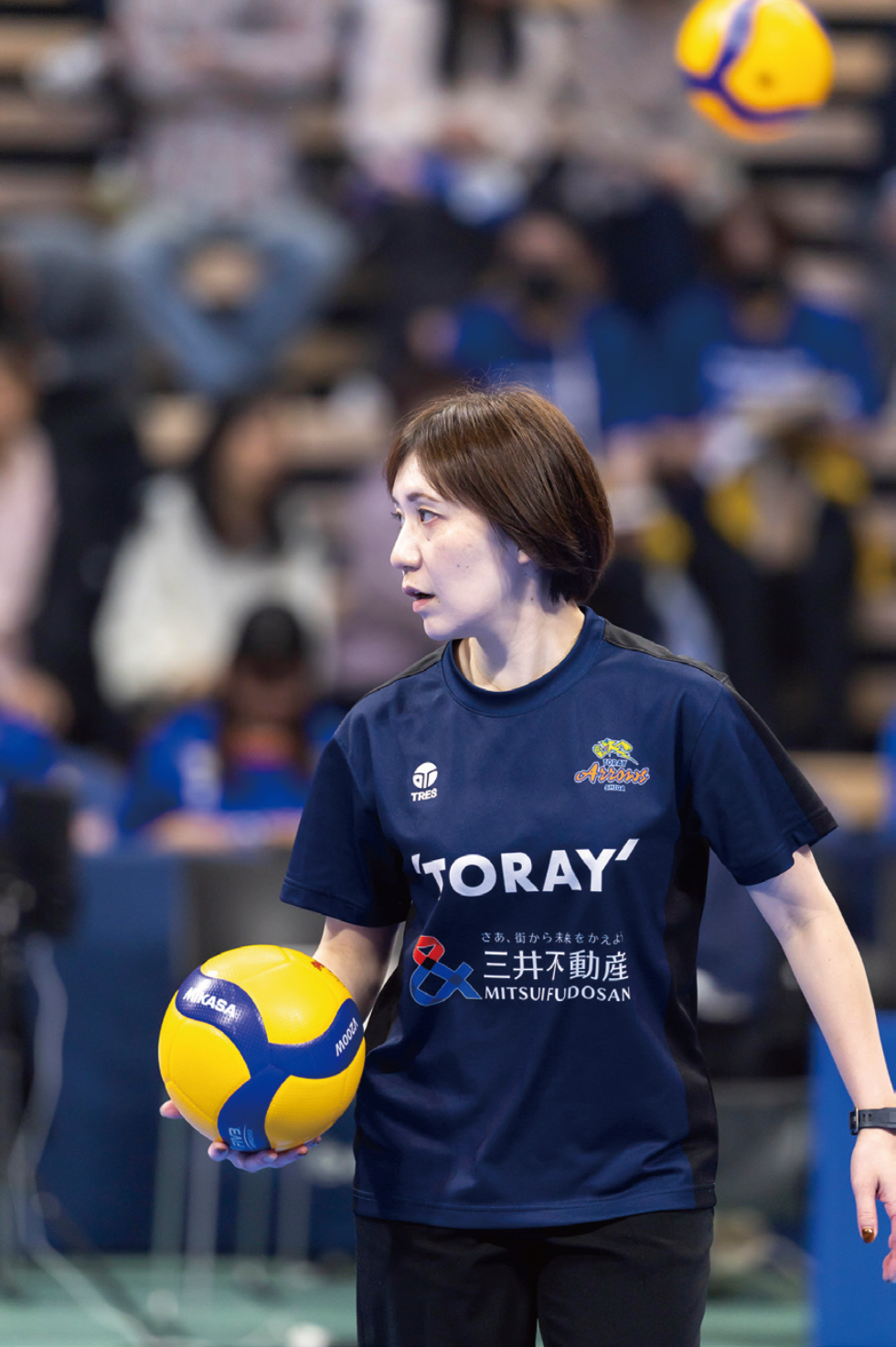 中道コーチは選手時代にアローズの司令塔として活躍しVプレミアリーグ女子史上初の3連覇に貢献。2012年ロンドンオリンピックでは銅メダリストに輝いた実績も持つ。引退後もアローズに関わり、24年からコーチに復帰。昨シーズンはセッターの田代佳奈美と二人三脚でチームの屋台骨を支えた。