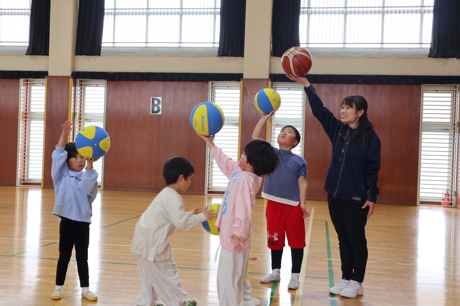その中で、着実に成果を上げている事業が「キッズバスケットボール」である。市協会が3年前から始めた独自事業で、幼稚園の年長から小学1年生を対象に月に1回のバスケットボール体験会を開いてきた。「バスケットボールは日本代表やBリーグの人気が高まっています。一方で、少子化やスポーツ離れが叫ばれる昨今、裾野となる世代の競技人口は減少傾向です。われわれはミニバスチーム頼みだった普及活動を、市協会のキッズバスケットボールとして開催し、参加した子どもたちがバスケットを続けたい場合は、地元のミニバスチームを紹介しています」